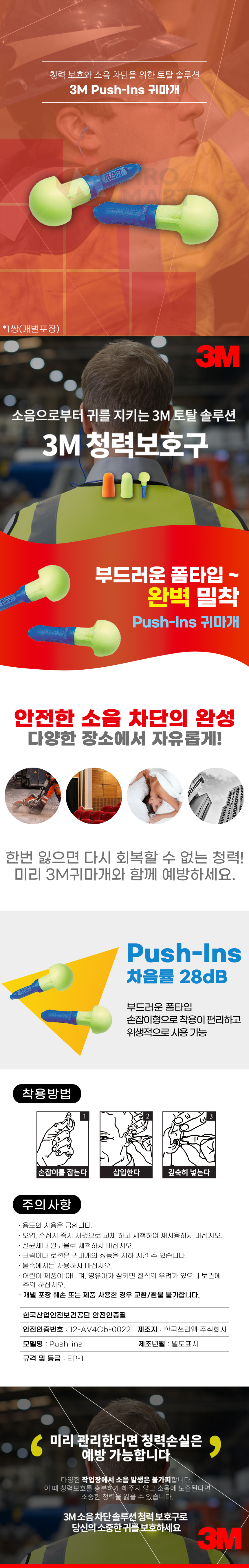 3M 귀마개 Push-Ins 이어플러그 수면 공부 소음