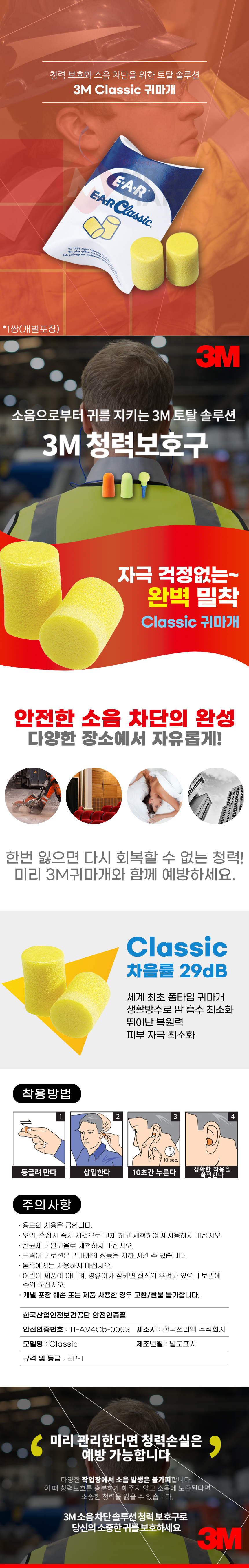 3M 귀마개 Classic 이어플러그 수면 공부 소음