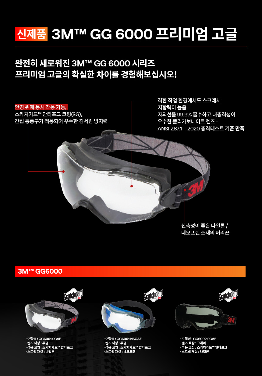 3M GG6001SGAF 프리미엄 고글 투명 보안경 보호 안경 산업 안전 김서림 방지