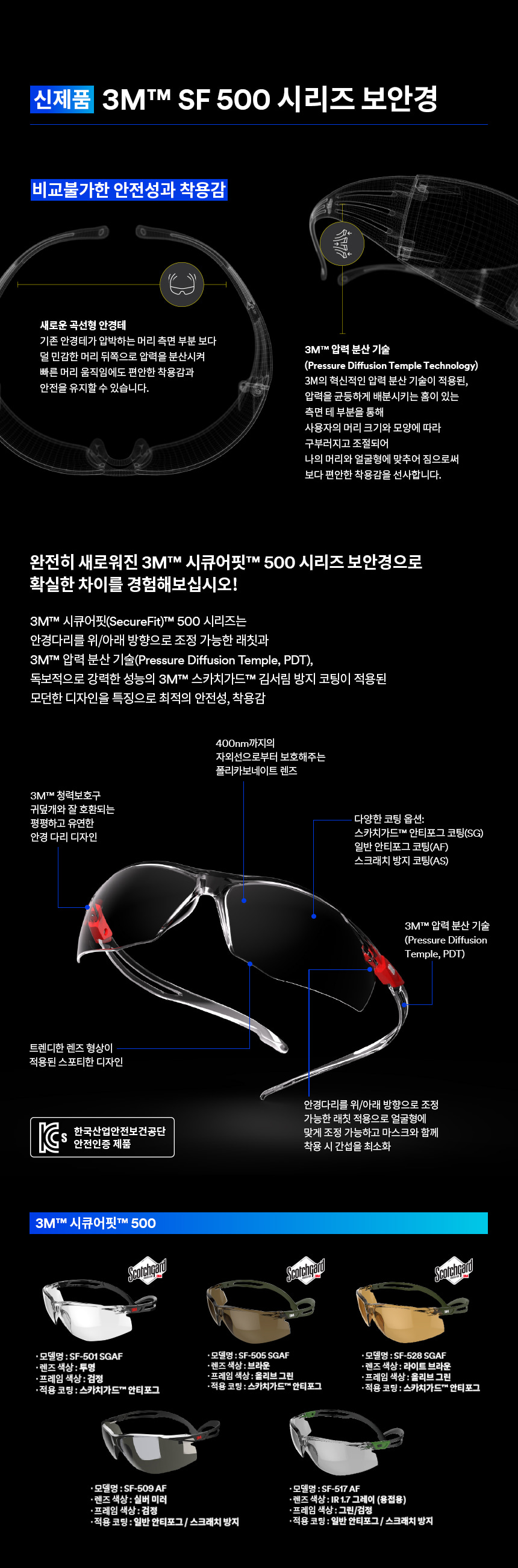 3M SF509AF 실버미러 보안경 보호 안경 산업 안전 김서림 방지