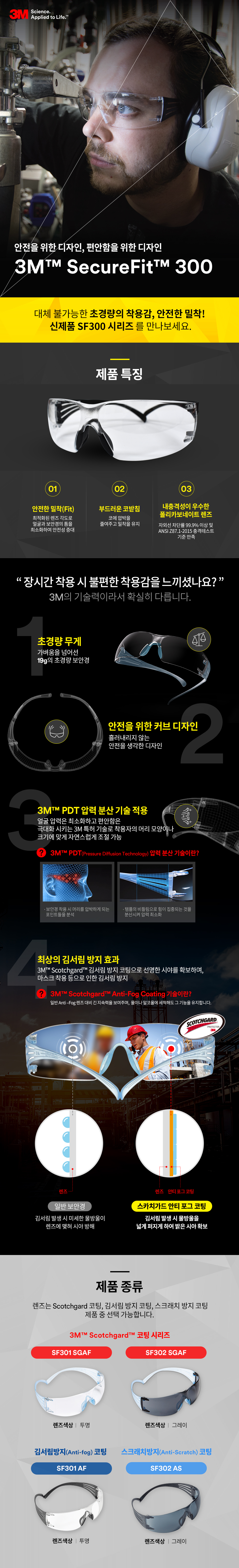 3M 보안경 SF301AF 산업 안전 보호 안경 투명