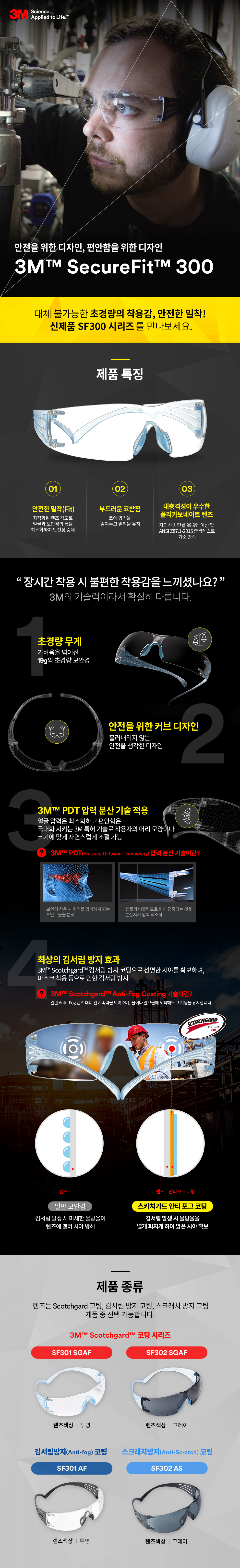 3M 보안경 SF301SGAF-LBL 산업 안전 보호 안경 투명