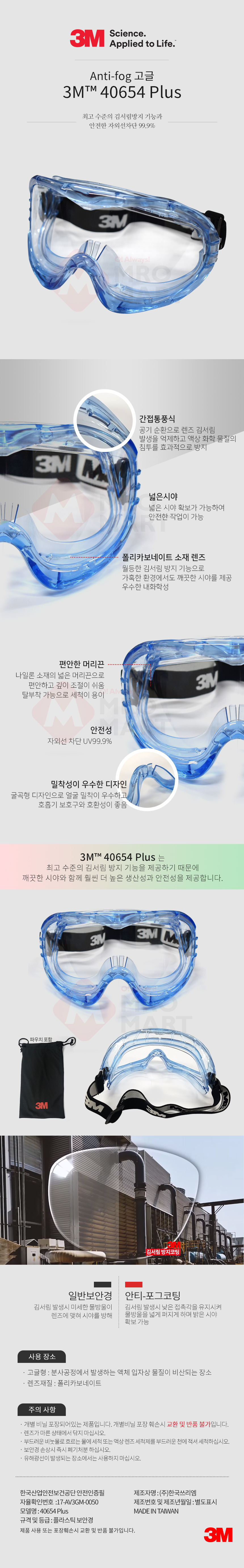 3M 보안경 보호안경 고글 40654 Plus Pc Lens 간접통풍