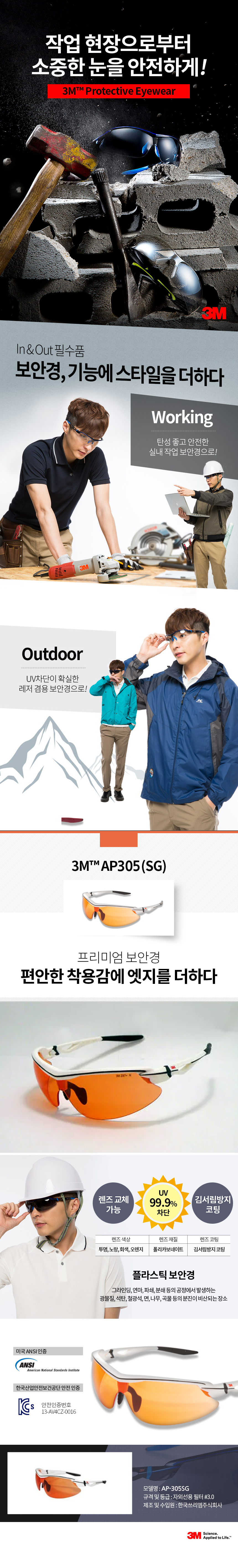 3M AP305 SG 보안경 산업 안전 보호 안경 오렌지