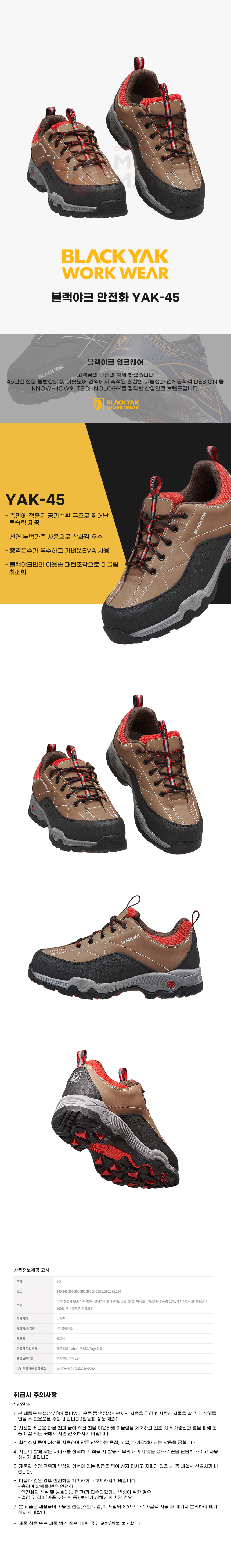 블랙야크 YAK-45 안전화 작업화 운동화