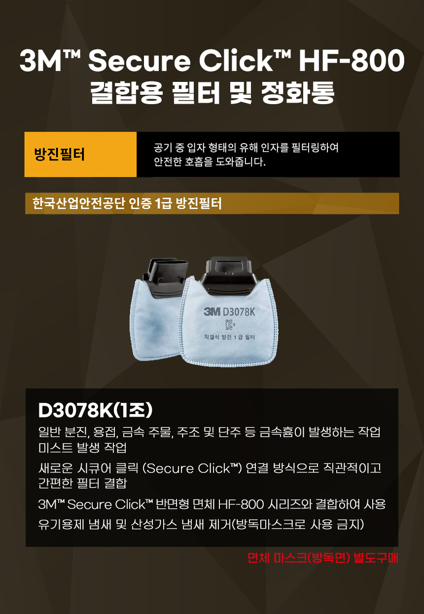 3M 1급 방진 필터 D3078K 1조 산업 안전 방독 면체 마스크 HF-800 분진 용접 냄새 산성가스