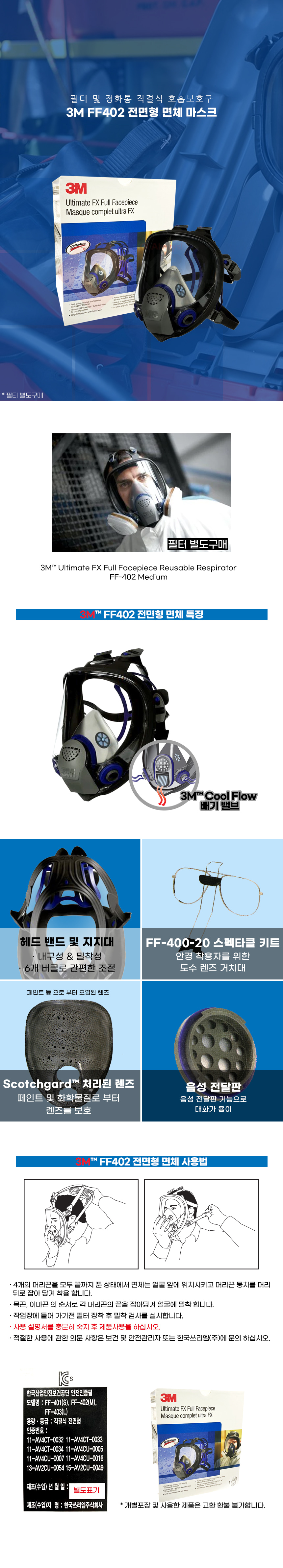 3M FF-402 전면형 면체 마스크 방독 분진 정화통
