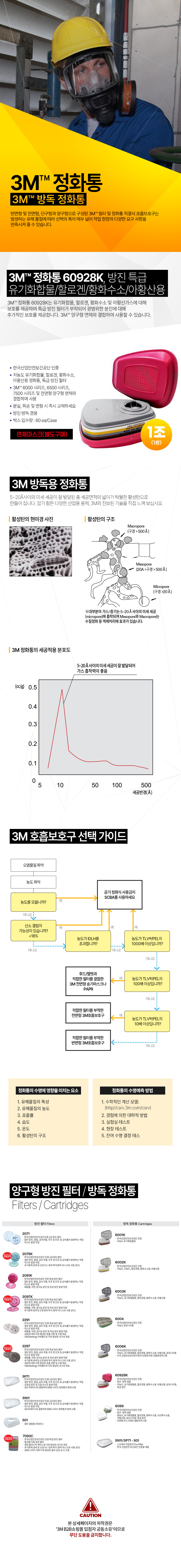 3M 60928K 방진 특급 정화통 필터 1조 방동 면체 마스크 양구형 전용 교체 할로겐 황화수소 아황산