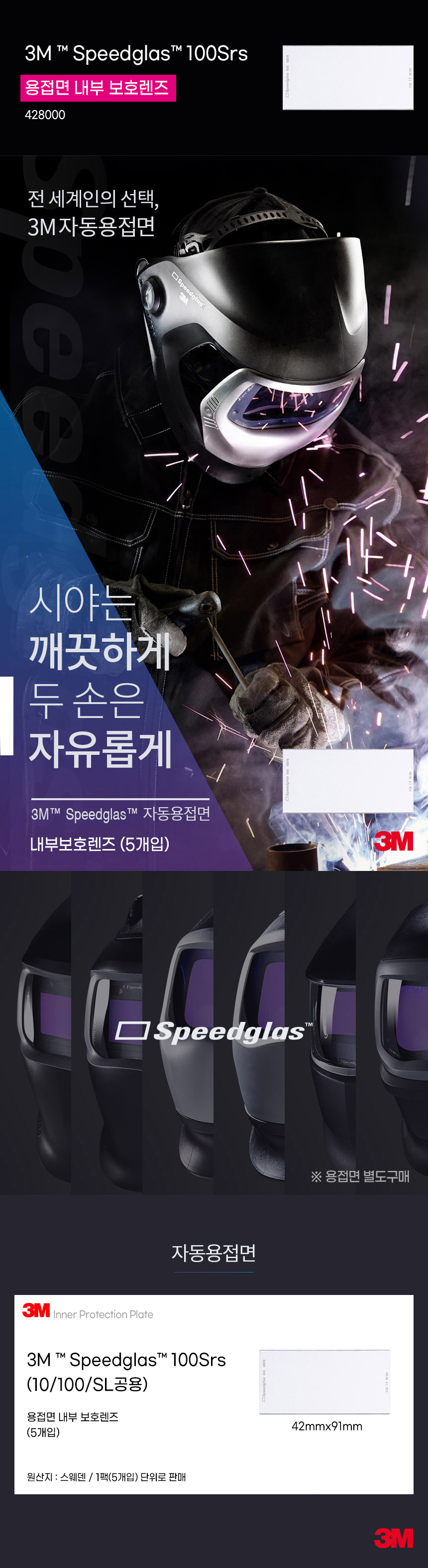3M 428000 스피드글라스 내부 보호 렌즈 100시리즈 SL 자동차광 용접면 5매입