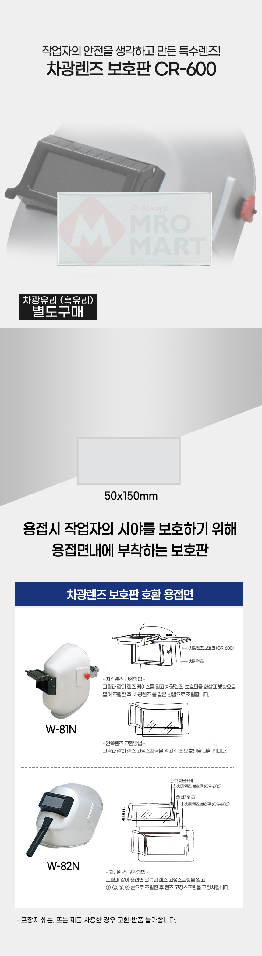 차광 렌즈 보호판 보호렌즈 투명 CR-600 용접면 부품
