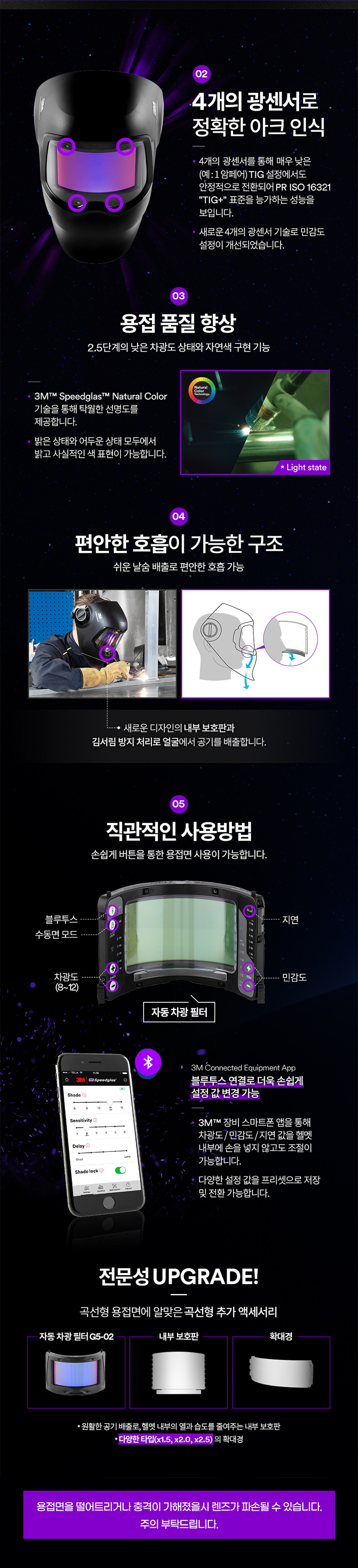3M 621120 스피드글라스 5세대 자동용접면 G5-02 곡선형 필터