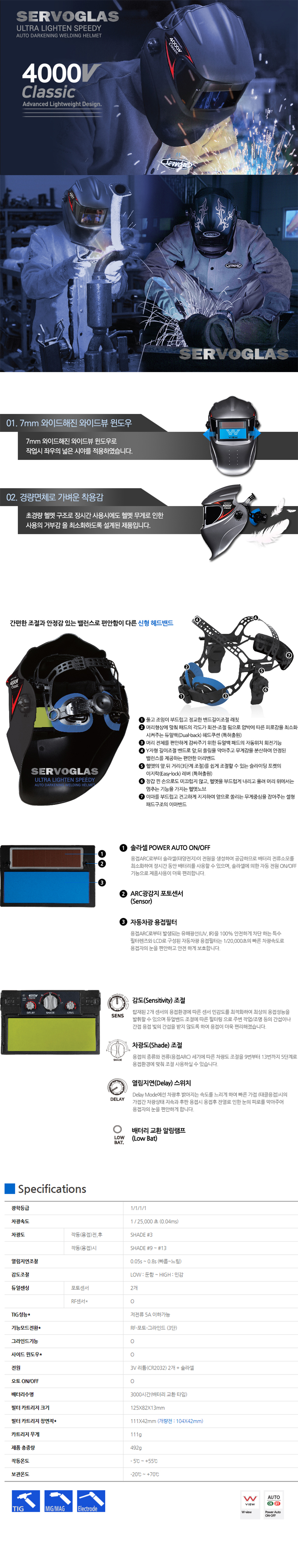 써보레 경량 스탠다드 자동 차광 용접면 4000V CLASSIC 메탈그레이