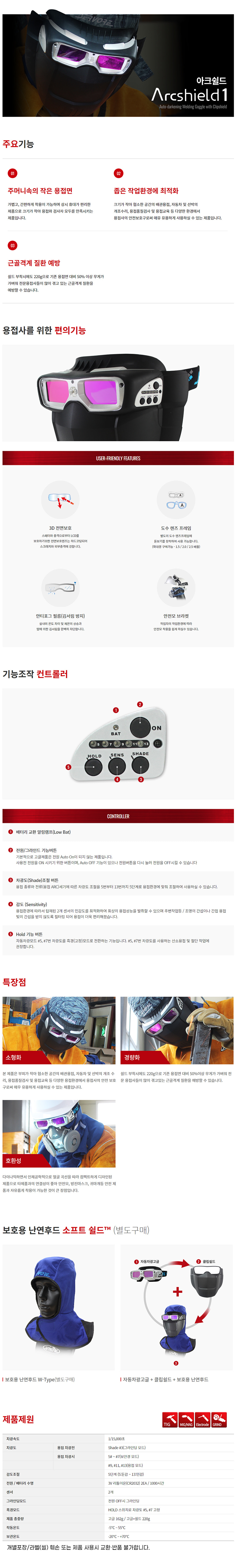 써보레 자동 차광 용접면 아크쉴드1 싱글 고글 마스크 안전 보호구