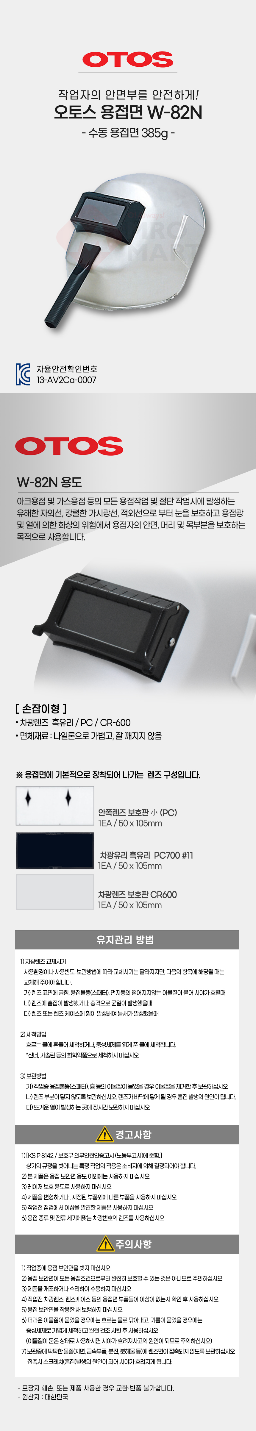 오토스 W-82N 수동식 보안면 용접 마스크 손잡이 개폐면