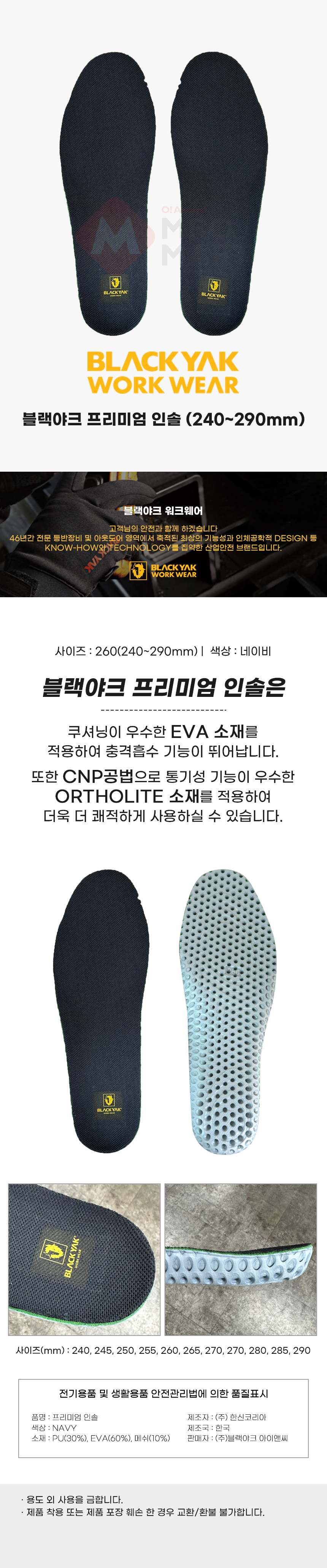 블랙야크 프리미엄 인솔 신발 깔창 기능성 쿠션 발편한 운동화 등산화 안전화 군화