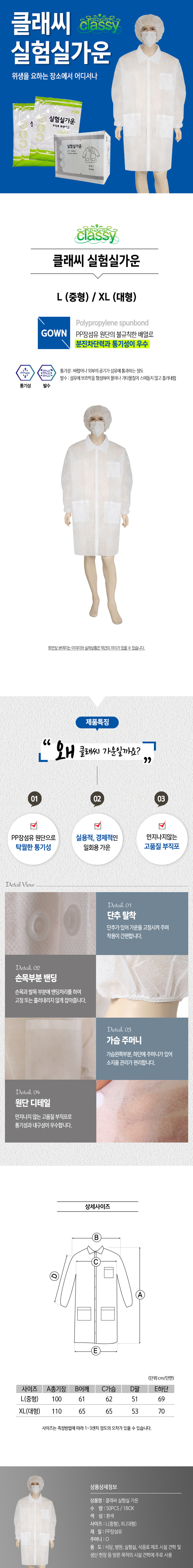 일회용 실험실 가운 부직포 위생가운