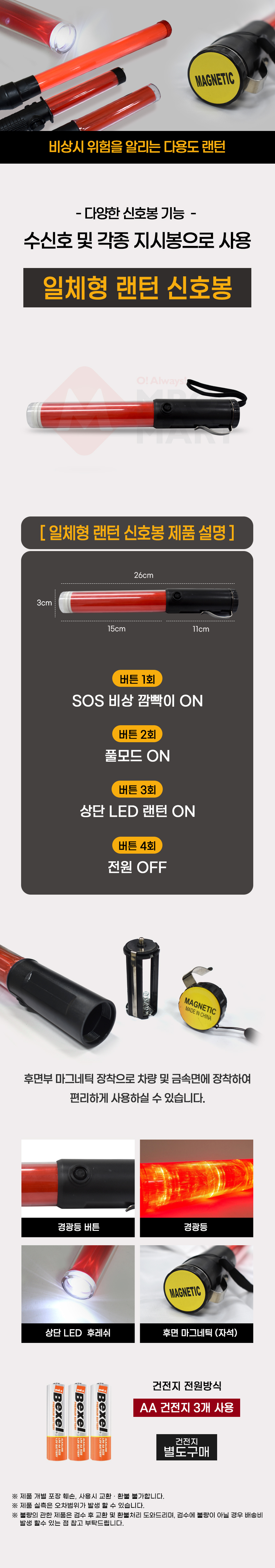 일체형 렌턴 신호봉 SM-202 자석 경광봉 유도봉 지시봉 경찰봉 교통안전봉