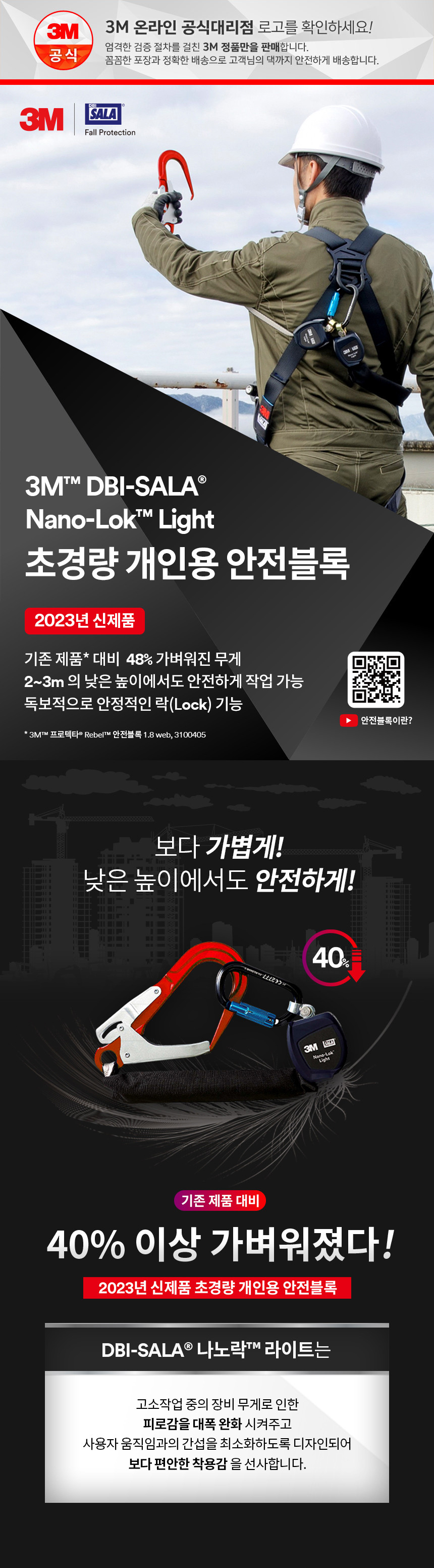 3M DBI-SALA Nano Lok 나노락 트윈 2개 걸이 초경량 개인용 안전 블록 3101754