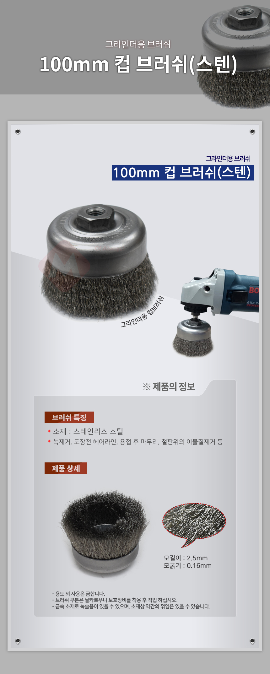 4인치 컵 브러쉬 브러시 스텐 그라인더용 강판 녹 이물질 제거 용접 마무리