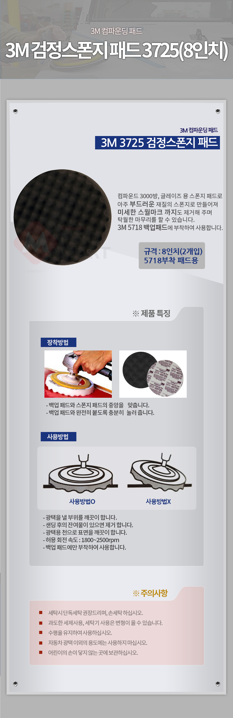 3M 검정스폰지패드 3725 광택패드 세차용품 왁스광택 자동차관리