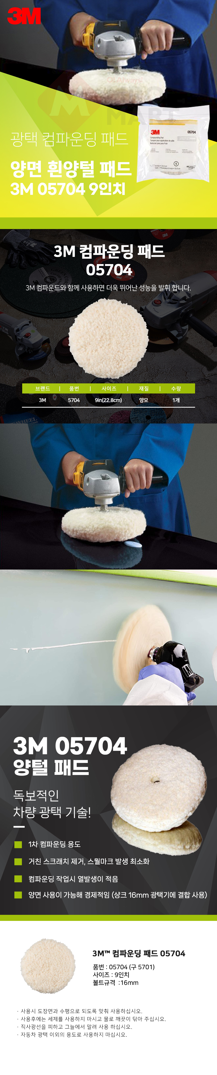 3M 5704 9인치 컴파운딩 양면 양털 패드 양모 광택 세차 1차 초벌