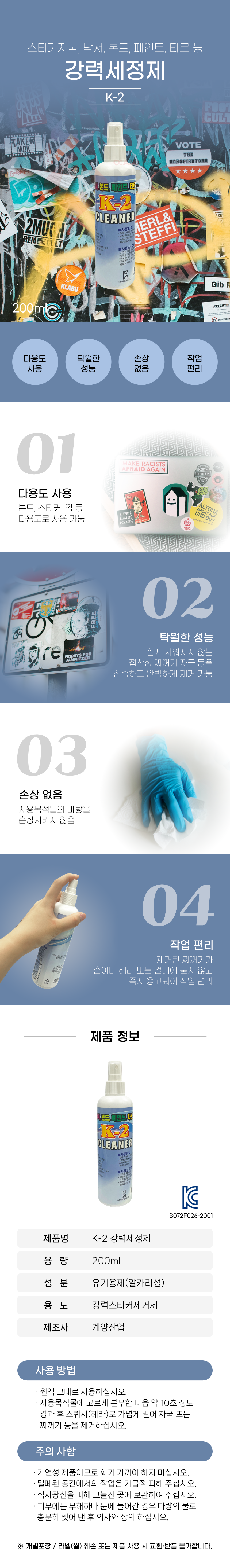 계양산업 K-2 강력 세정제 200ml 스티커 접착제 낙서 본드 페인트 타르 클리너 크리너