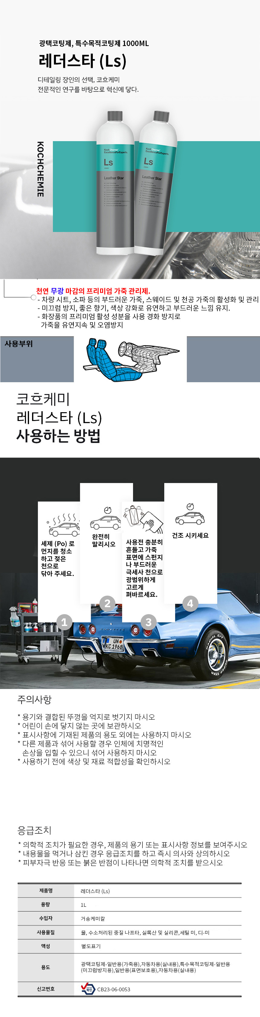 코흐케미 레더스타 Ls 1000ml 광택 코팅제 가죽 컴파운드 스크래치 흠집 자동차 차량 세차