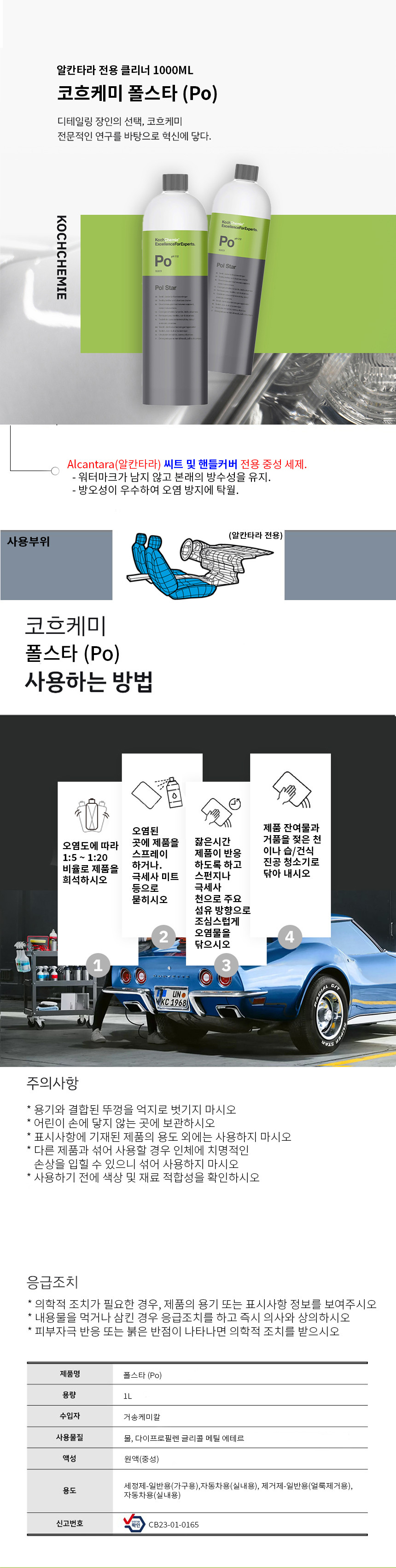 코흐케미 폴스타 Po 1000ml 씨트 핸들 커버 전용 얼룩 오염 클리너 자동차 차량 세차