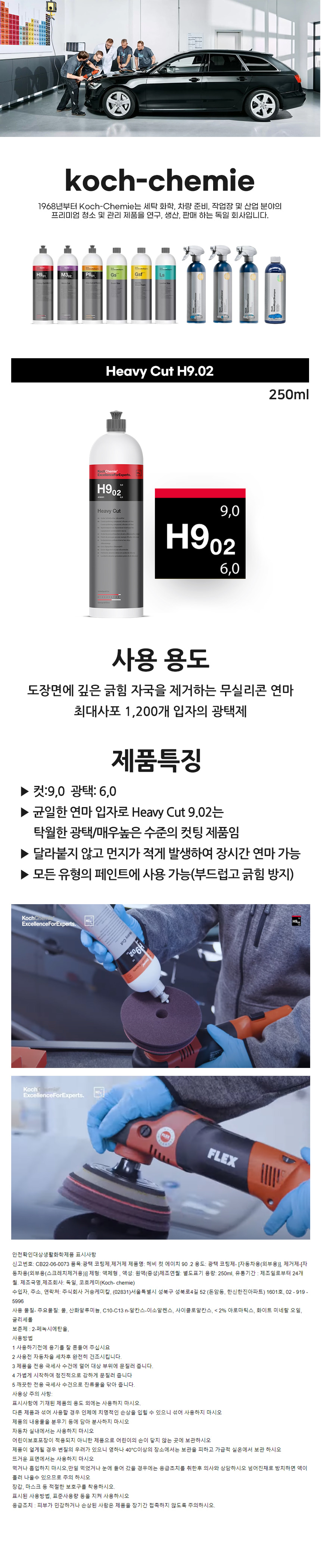 코흐케미 H9.02 헤비컷 1000ml 1200방 컴파운드 스크래치 흠집 광택 자동차 차량 세차
