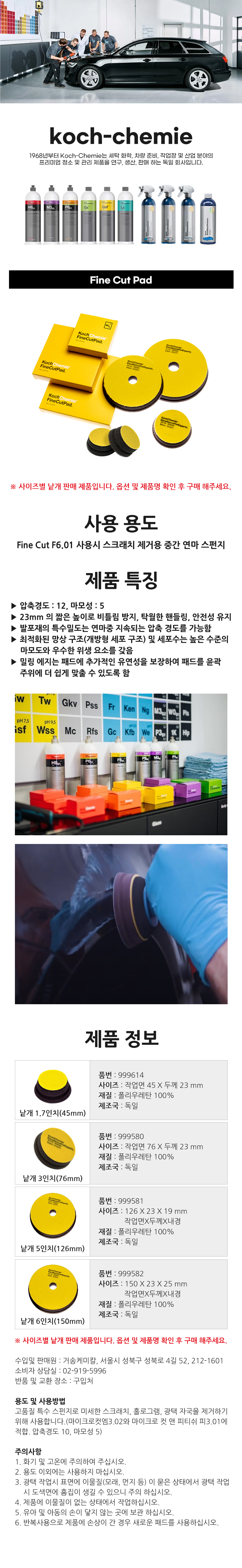 코흐케미 파인컷 패드 3인치 999580 컴파운드 스펀지 광택 패드 자동차 차량 세차