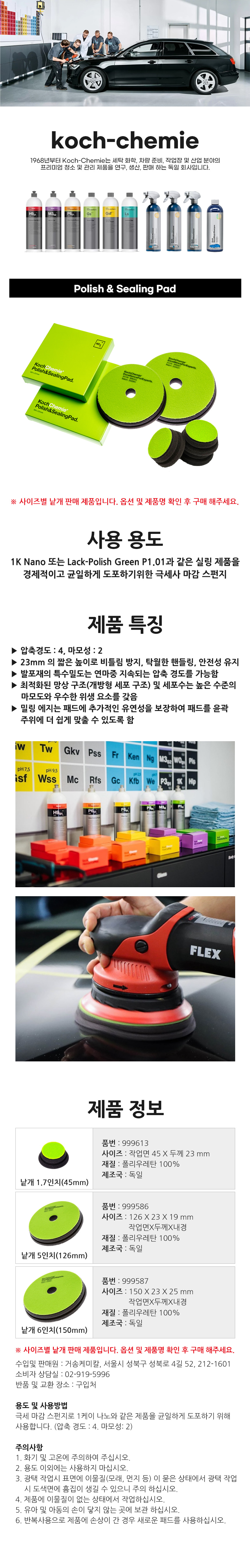 코흐케미 폴리쉬 앤 실링 패드 6인치 마무리 컴파운드 스펀지 광택 패드 자동차 차량 세차