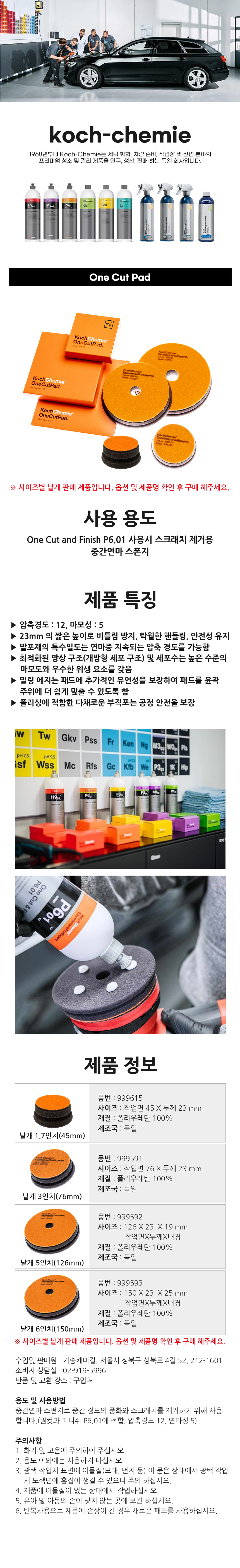 코흐케미 원컷 패드 6인치 컴파운드 스펀지 광택 패드 자동차 차량 세차