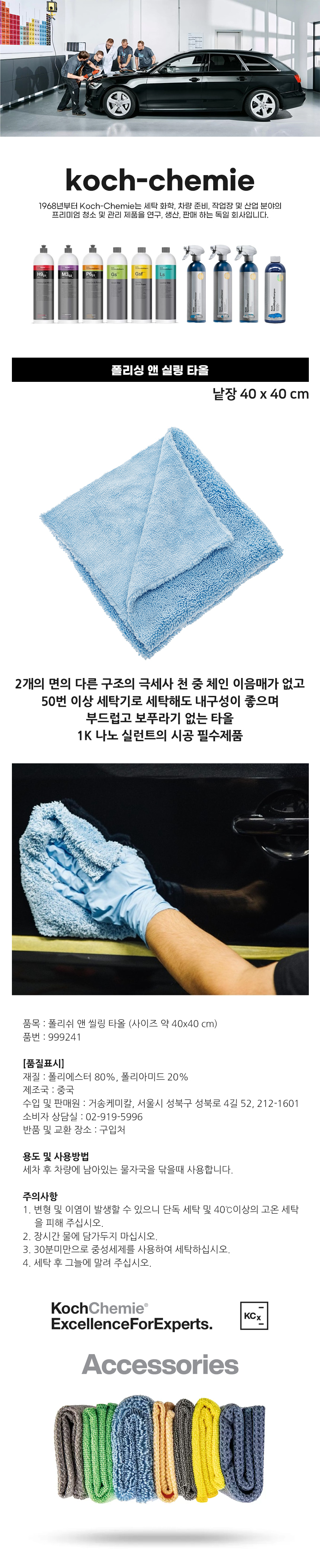코흐케미 폴리쉬 앤 씰링 타올 999241 40X40cm 세차 극세사 천 타월 걸레 광택 자동차 차량 세차