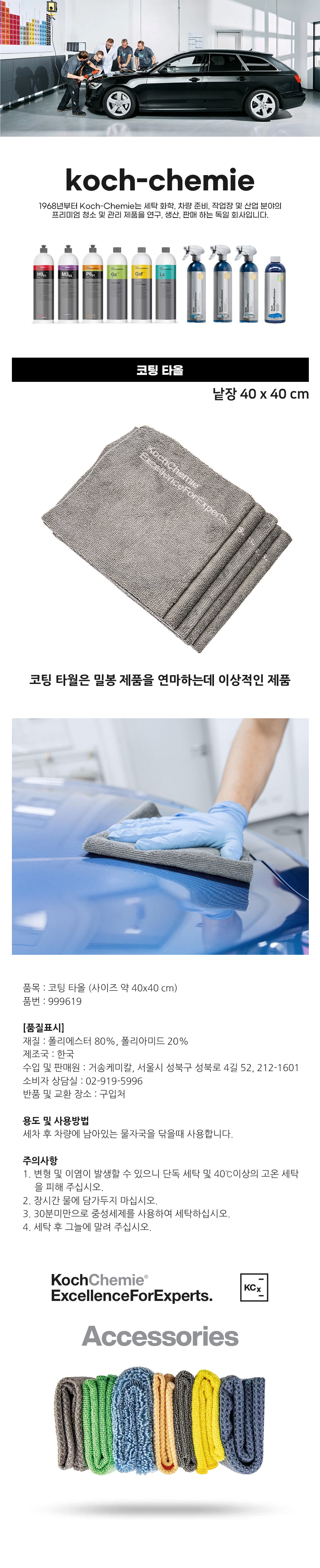 코흐케미 코팅 타올 무봉제 999619 40X40cm 세차 극세사 천 타월 걸레 광택 자동차 차량 세차