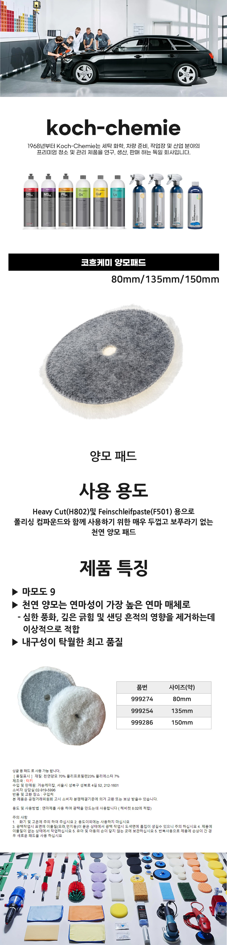 코흐케미 양모 패드 135mm 999254 컴파운드 스크래치 흠집 광택 작업 자동차 차량 세차