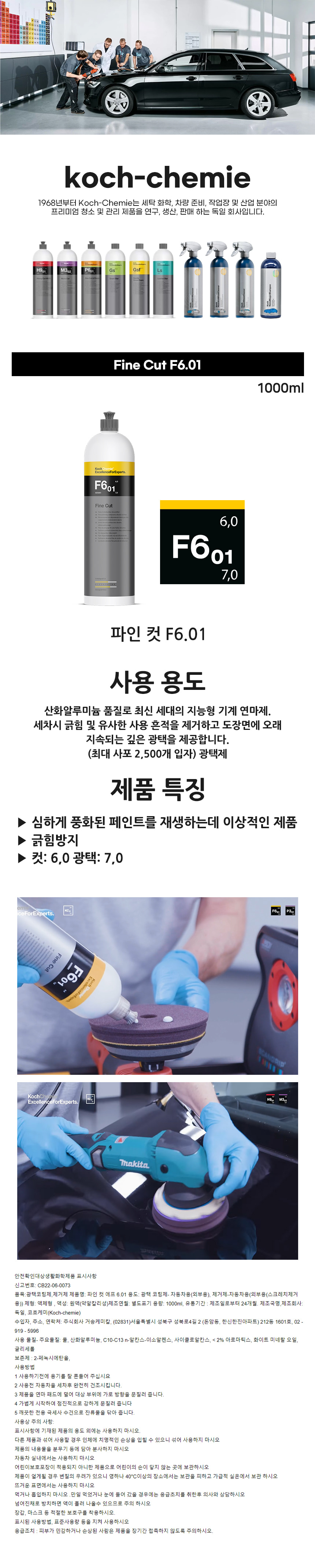 코흐케미 파인컷 F6.01 1000ml 2500방 컴파운드 스크래치 흠집 광택 광택제 자동차 차량 세차