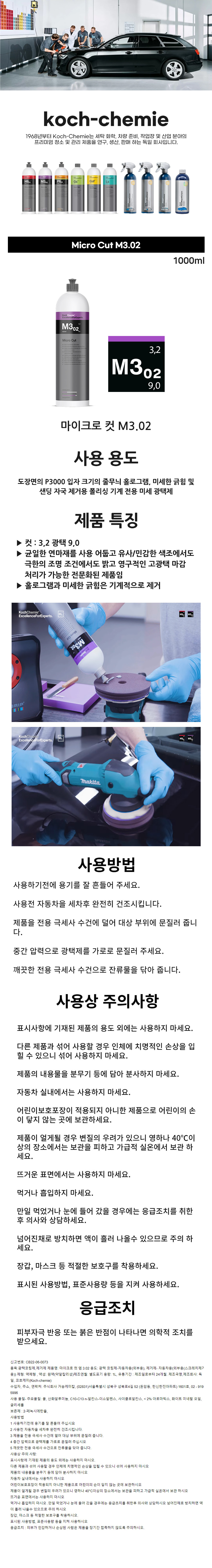 코흐케미 마이크로컷 M3.02 1000ml 3000방 컴파운드 스크래치 흠집 광택 자동차 차량 세차