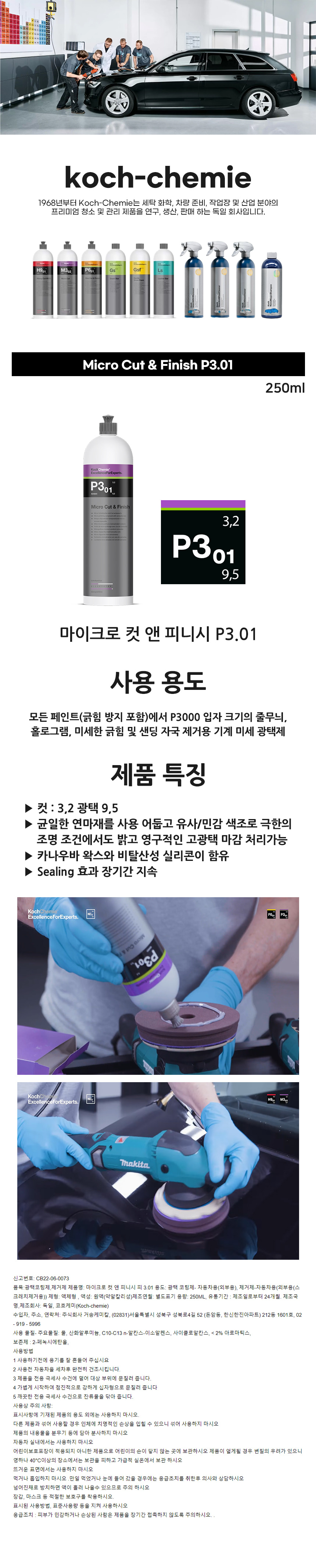 코흐케미 마이크로컷 앤 피니쉬 P3.01 250ml 3000방 폴리싱 컴파운드 스크래치 흠집 광택 자동차 차량 세차