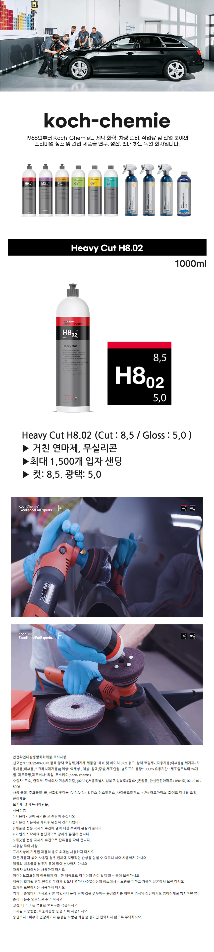 코흐케미 H8.02 헤비컷 1000ml 1500방 컴파운드 스크래치 흠집 광택 자동차 차량 세차