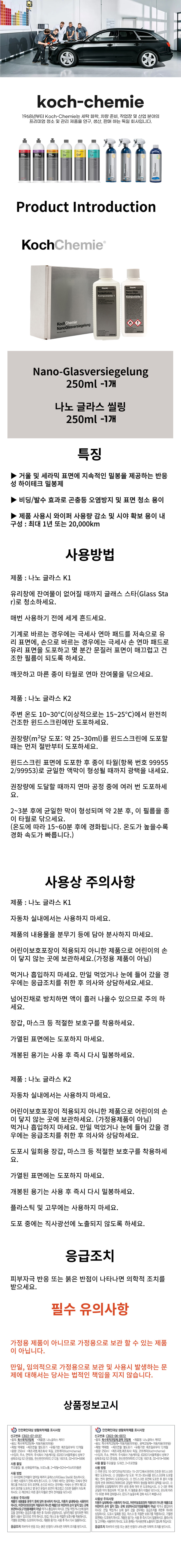 코흐케미 나노 글라스 씰링 초강력 유리 발수 코팅제 관리제 비딩 광택 자동차 차량 세차