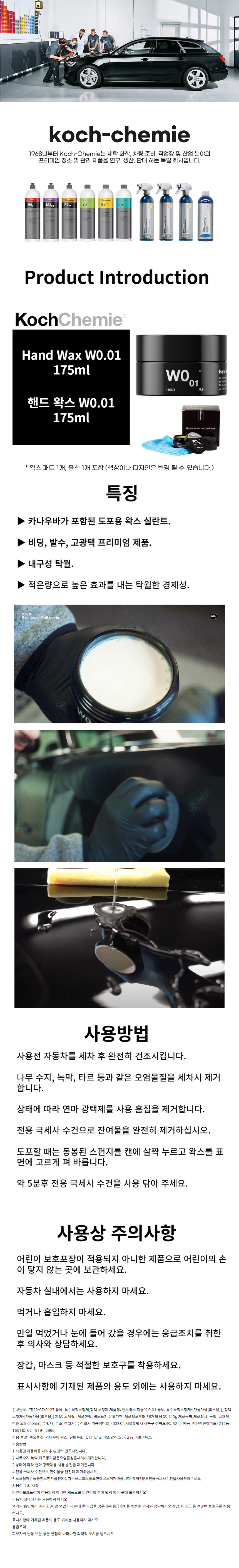 코흐케미 W0.01 핸드 왁스 175ml 카나우바 실란트 고체 코팅 광택제 발수 고광택 자동차 차량 세차