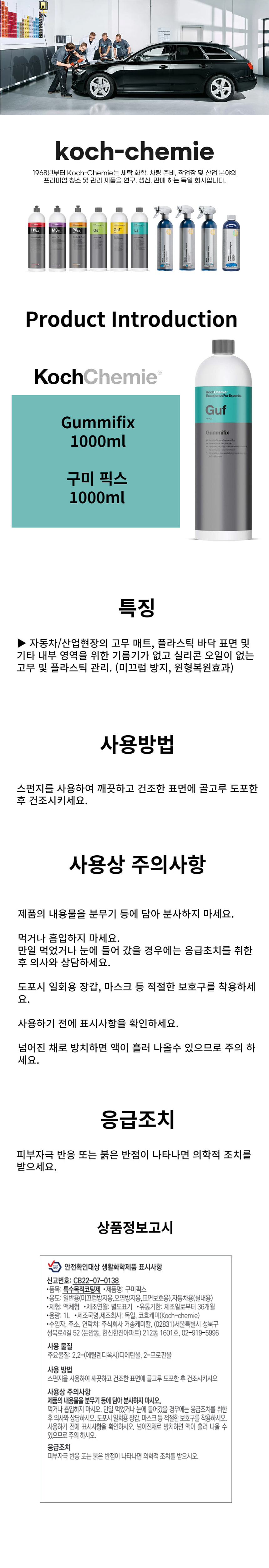 코흐케미 구미픽스 1000ml 관리제 고무 실링 매트 플라스틱 관리 자동차 차량 세차