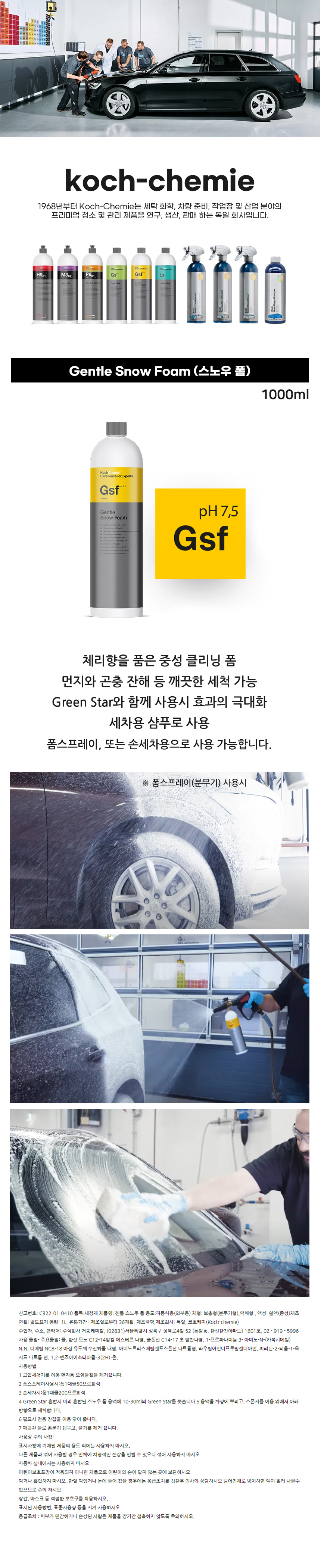 코흐케미 젠틀 스노우 폼 1000ml 샴푸 카샴푸 카워시 체리향 중성 자동차 차량 세차