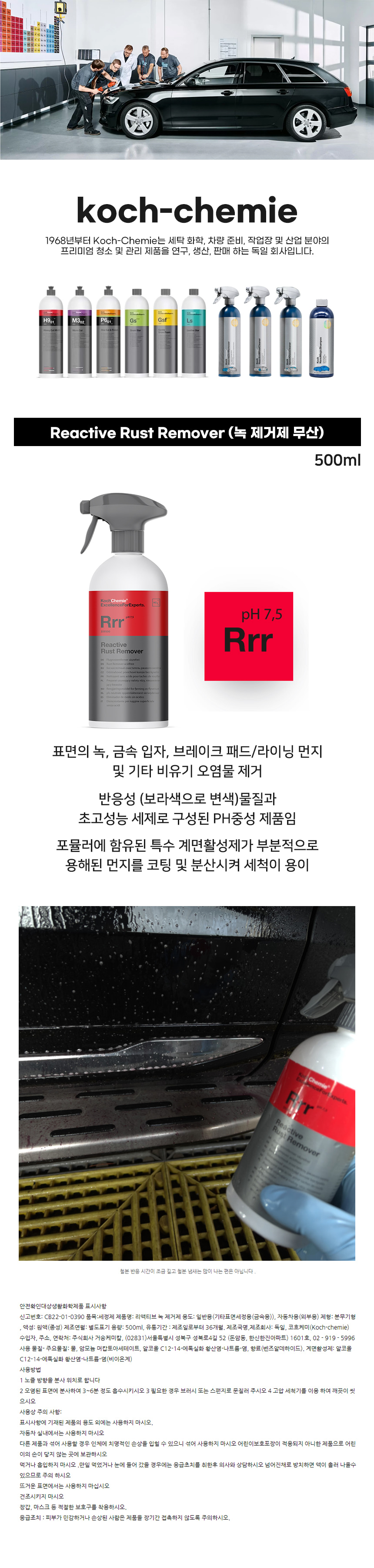 코흐케미 리액티브 철분 녹 제거제 500ml 분진 타이어 휠 스프레이 세정 세척 자동차 차량 세차
