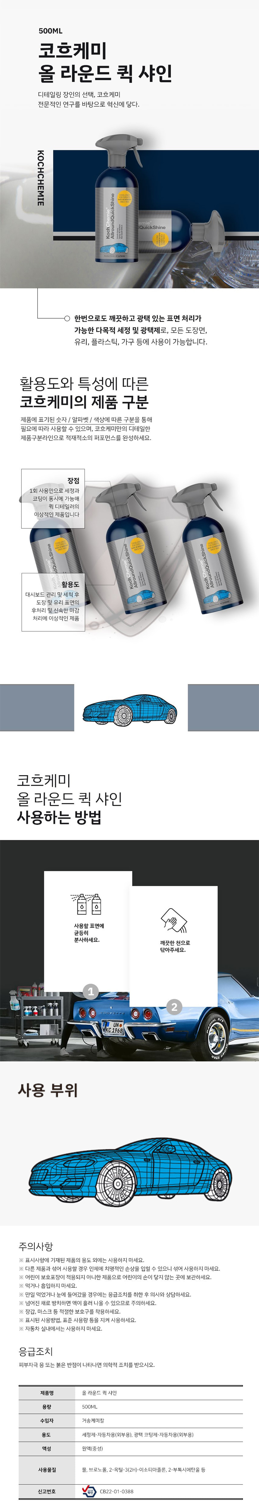 코흐케미 올 라운드 퀵 샤인 500ml 실내외 관리 세척 스프레이 세차 차량 자동차