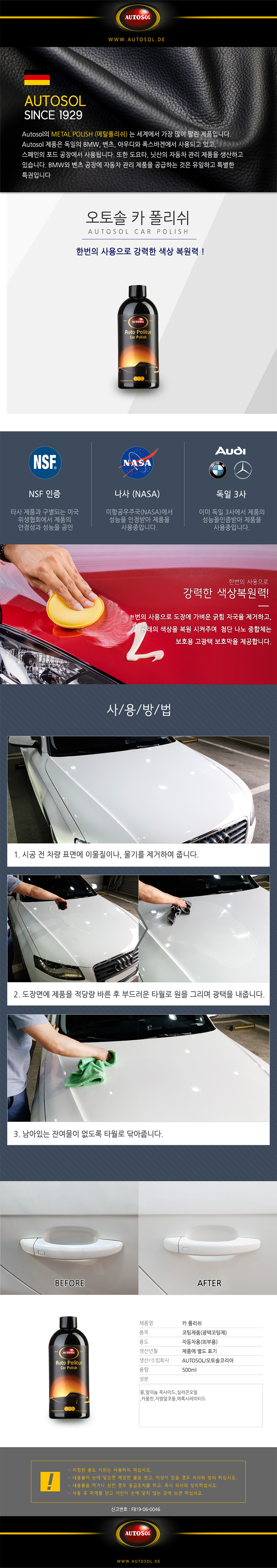 오토솔 카 폴리쉬 500ml 자동차 세차 셀프 광택 광택제 코팅
