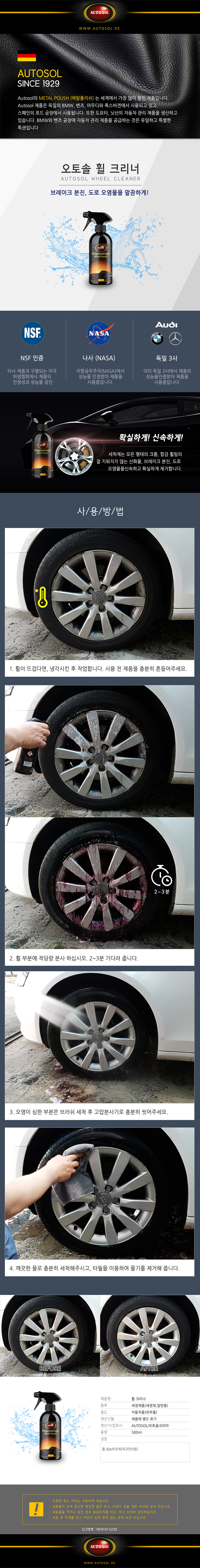 오토솔 휠 크리너 스프레이 500ml 클리너 브레이크 분진 오염물 자동차 차량 세차