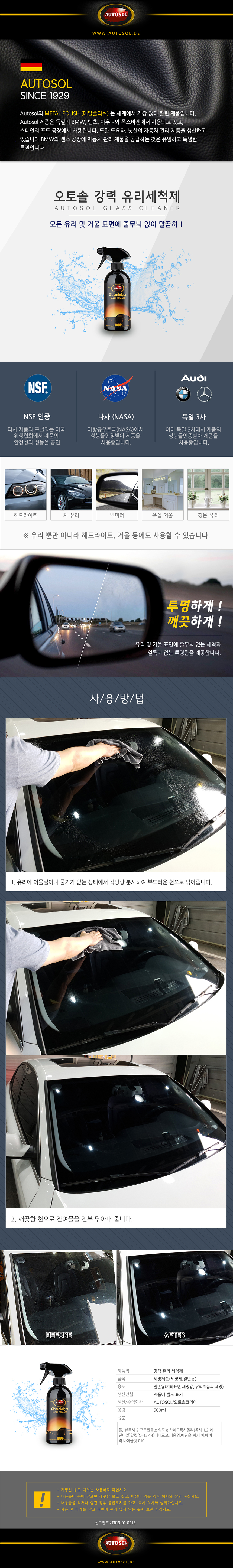 오토솔 강력 유리 세척제 500ml 헤드라이트 백미러 창문 거울 청소 자동차 차량 세차
