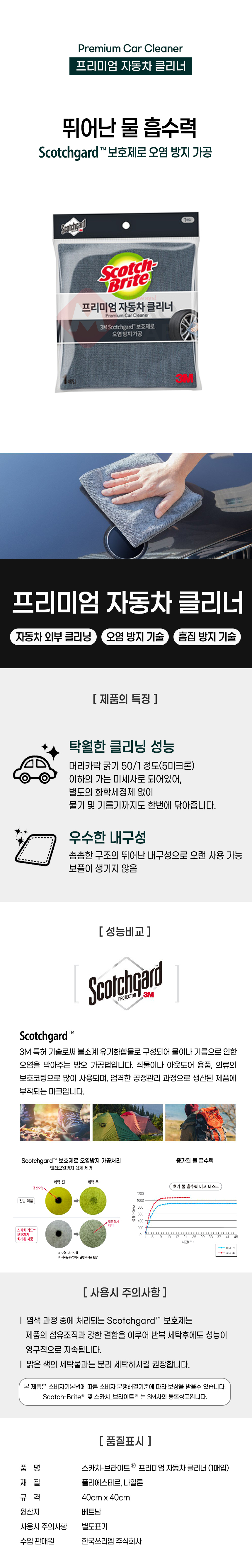 3M 프리미엄 자동차 클리너 극세사 물기 먼지 청소 세차 유리