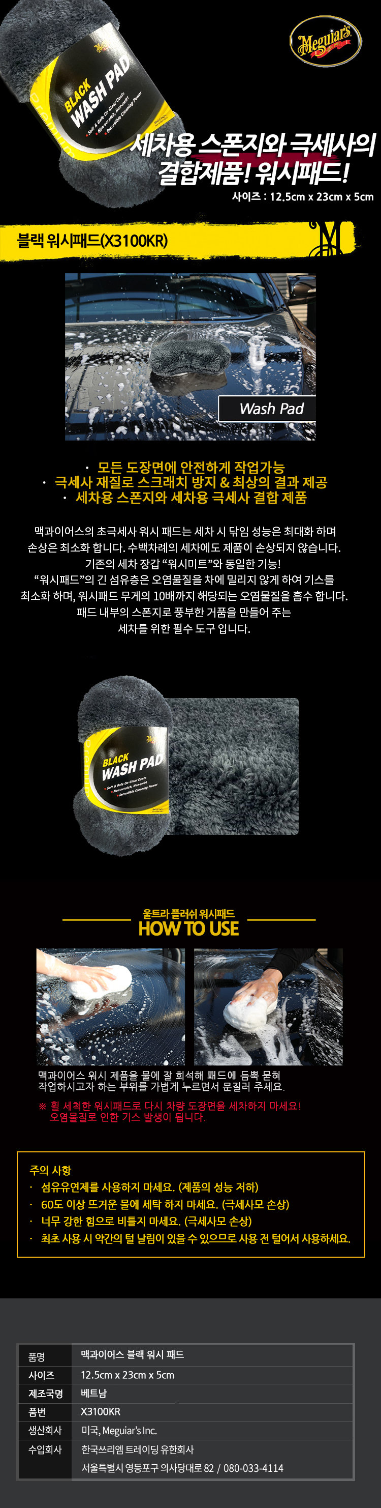 맥과이어스 블랙 워시 패드 X3100KR 스펀지 타올 자동차 차량 세차